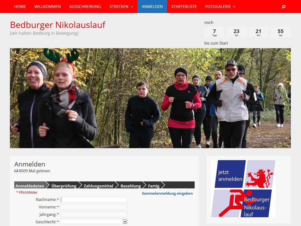 In sieben Tagen startet der 32. Nikolauslauf der Turnvereinigung Bedburg rund um den Kasterer See. Eine Onlineanmeldung ist noch bis Donnerstag, den 7. Dezember 2017 möglich. Wer sich bis zu diesem Zeitpunkt anmeldet, sichert sich die Urkunde und den leckeren Weckmann als Belohnung für seine erzielte Laufleistung. Eine Nachmeldung ohne Aufpreis ist natürlich auch noch am Veranstaltungstag möglich. Dann werden Weckmänner aber nur so lange verteilt, wie der Vorrat reicht.